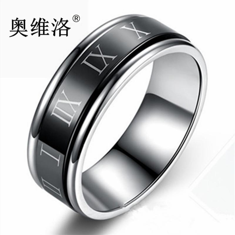 Aovello Trendy Korean-Style Roman Ring Street Dance Fashion Rotating Black Personalized Creative Hip-Hop Men's Index Finger Ring