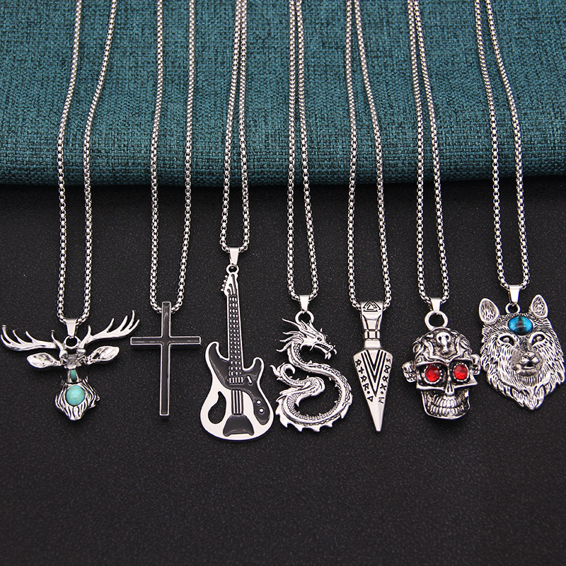 Bhaisajyaguru Skull Necklace Personalized Titanium Steel Punk Men's Hip-Hop Pendant Sweater Chain Cross-Border Hot-Selling Necklace