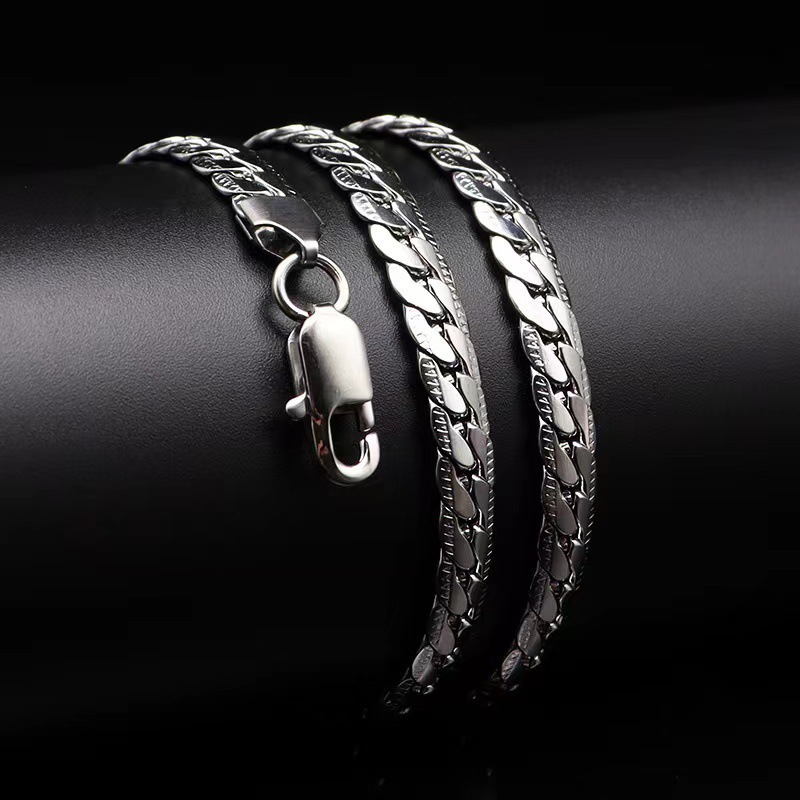 Men's Stainless Steel Necklace Hip-Hop Trendyy Twist Chain Flat Snake Chain Blade Chain Cuban Sweater Chain Titanium Steel Snake Bone Chain