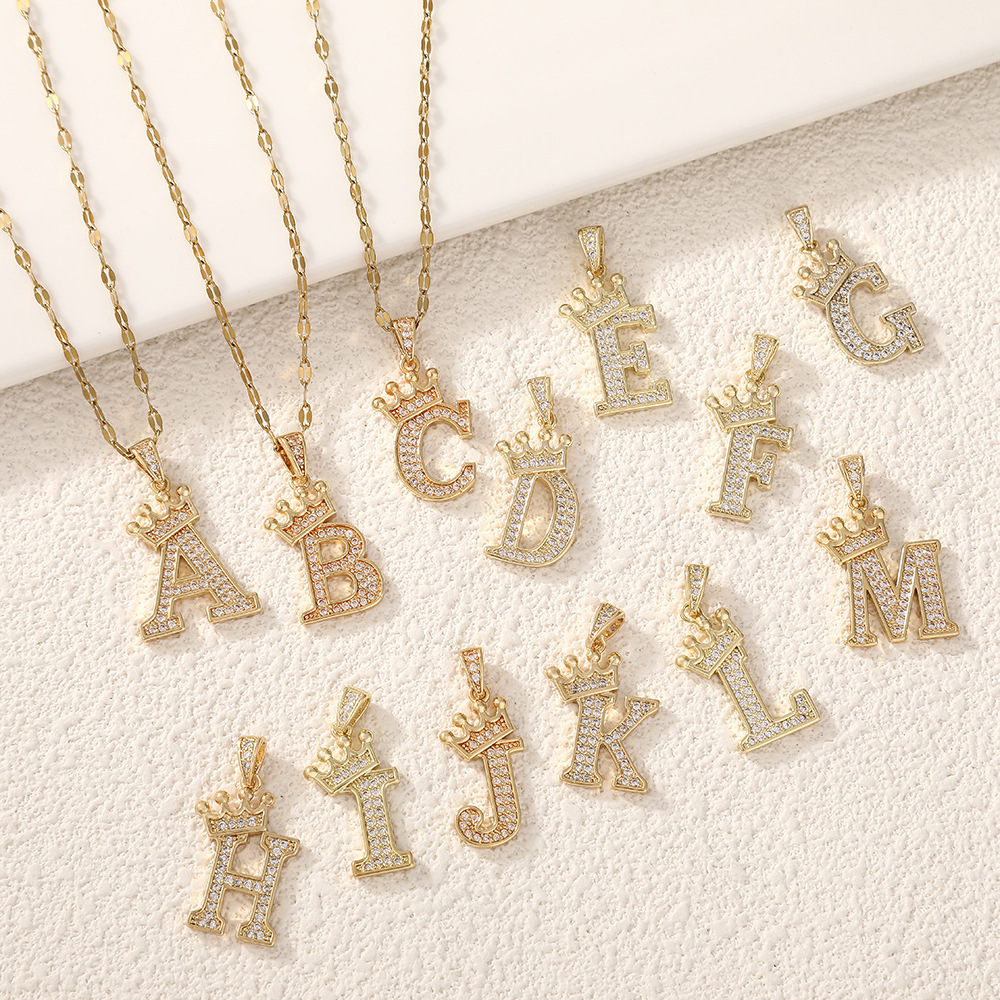 Cross-Border 26 English Letter Necklace Pendant European and American Ins Trend Zircon Necklace Hip-Hop Style Accessible Luxury Necklace Pendant