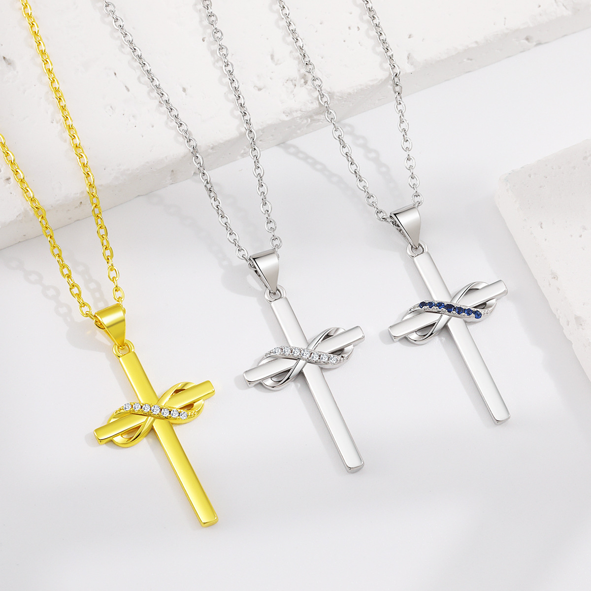 Temu European and American Cross-Border Hip-Hop Glossy Pendant Women's Infinity Symbol 8-Shaped Classic Fashion Trend Cross Necklace