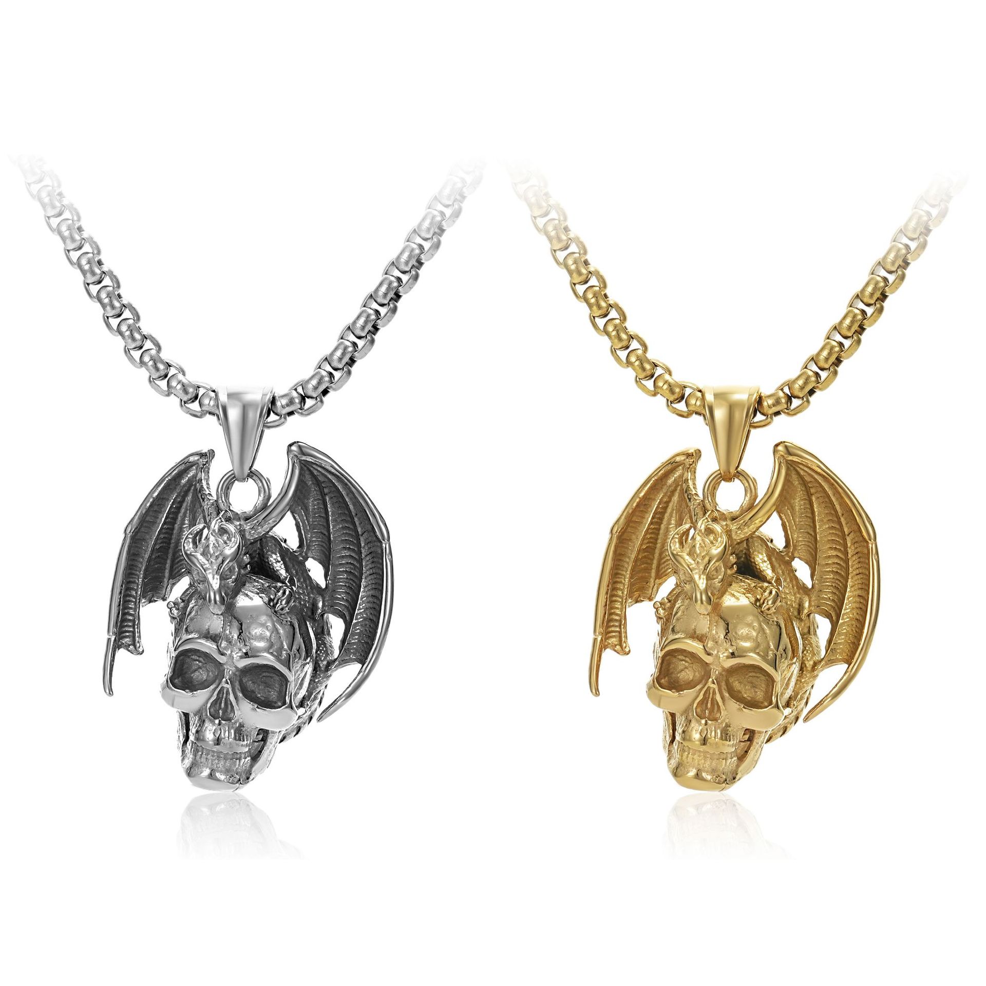 European and American retro domineering devil angel skull pendant skull wings pendant men's hip-hop personality necklace