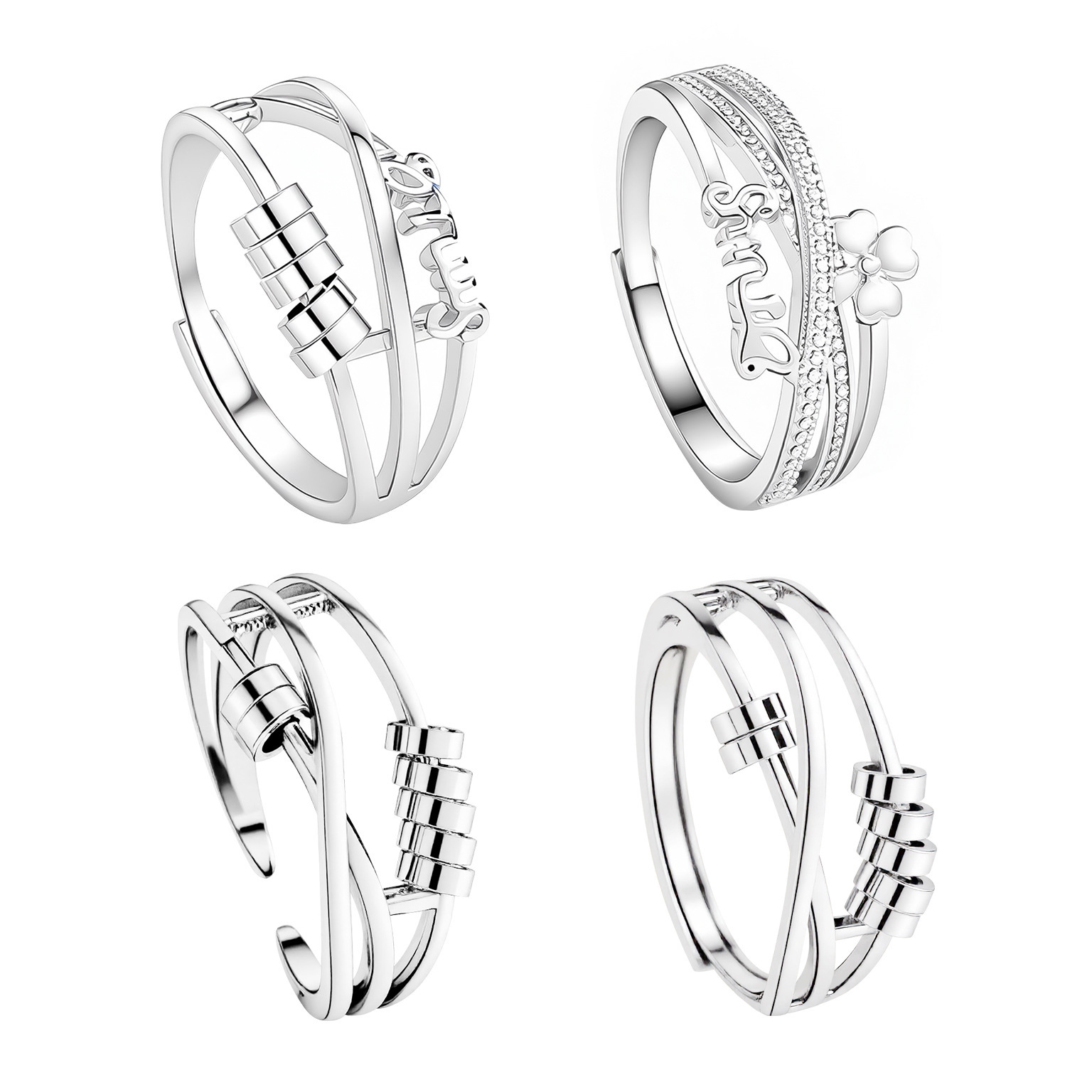 2025 European and American Amazon Fashion Elegant Women's Accessible Luxury Transfer Beads Hip-Hop Geometric European and American Cool Style Ring