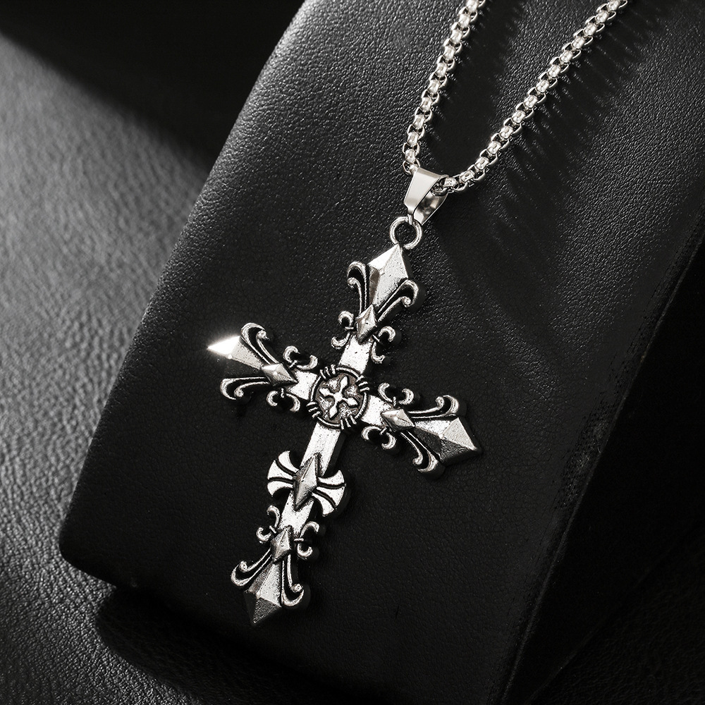 European and American Retro Cross Necklace Men's Trendy Hip-Hop Personalized Pendant Titanium Steel Alloy Sweater Chain Couple Trendy Accessories