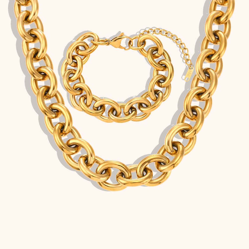European and American Cross-border Hot Selling Exaggerated Hip-hop Round Thick Chain Bracelet Stainless Steel Plated 18K Gold Necklace Jewelry for Women