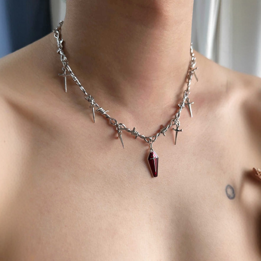 European and American Halloween Gothic Dark Coffin Cross Long Sword Thorns Harajuku Hip Hop Street Retro Necklace