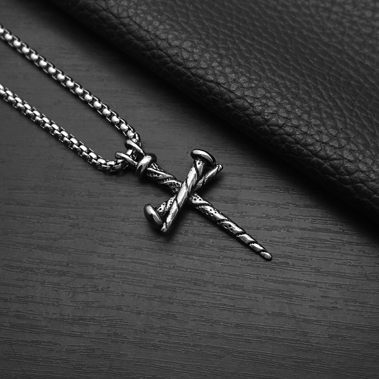 Cross-border European and American Personality Cast Nail Cross Pendant Punk Hip-hop ins Simple Trendy Titanium Steel Necklace for Men and Women