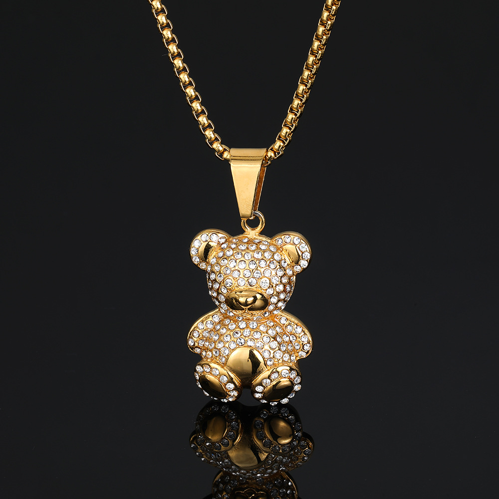 Europe and the United States cross-border hot hip-hop Street cartoon full Diamond Bear titanium steel gold-plated pendant INS necklace wholesale