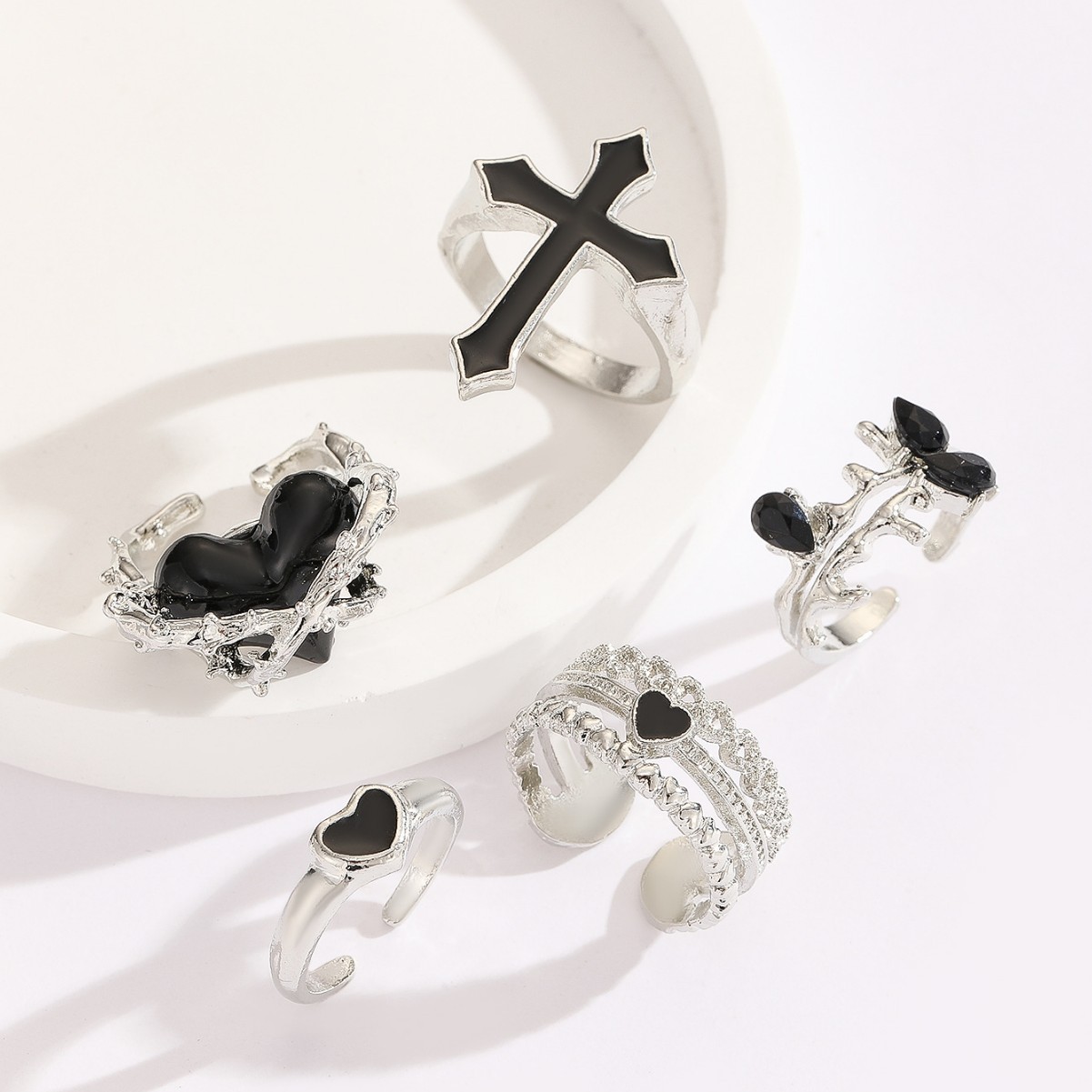 Xiyin Cross-Border Ring Jewelry, Fashionable and Unique Black Heart Cross Open-Ended Couple Rings, European and American Style Ring Set Wholesale