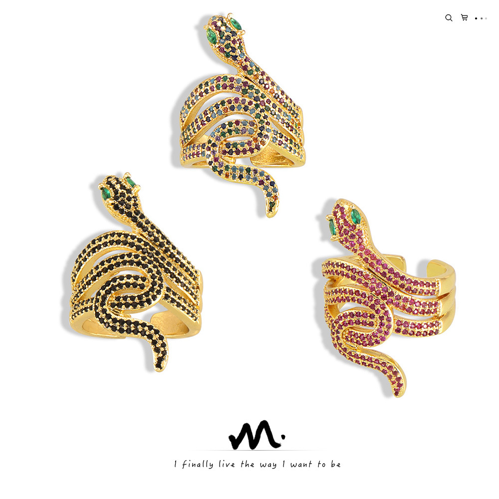 Cross-border hot-selling personalized hip-hop unique spirit snake ring inlaid with colored diamond design sense copper material opening finger ring