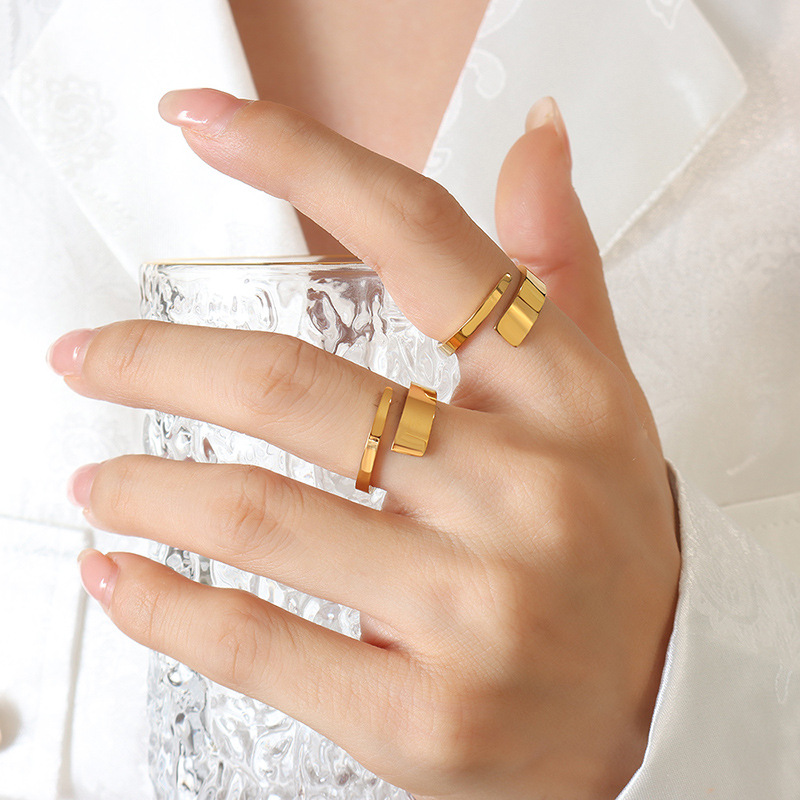 Cross-border Europe and the United States ins style jewelry Europe and the United States exaggerated hollow ring female titanium steel 18K real gold ring hip-hop jewelry