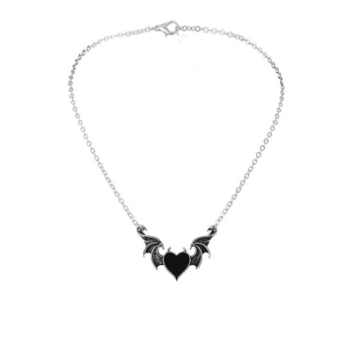 Cross-border foreign trade devil wings necklace Gothic retro punk hip hop style metal pendant heart-shaped drop oil necklace