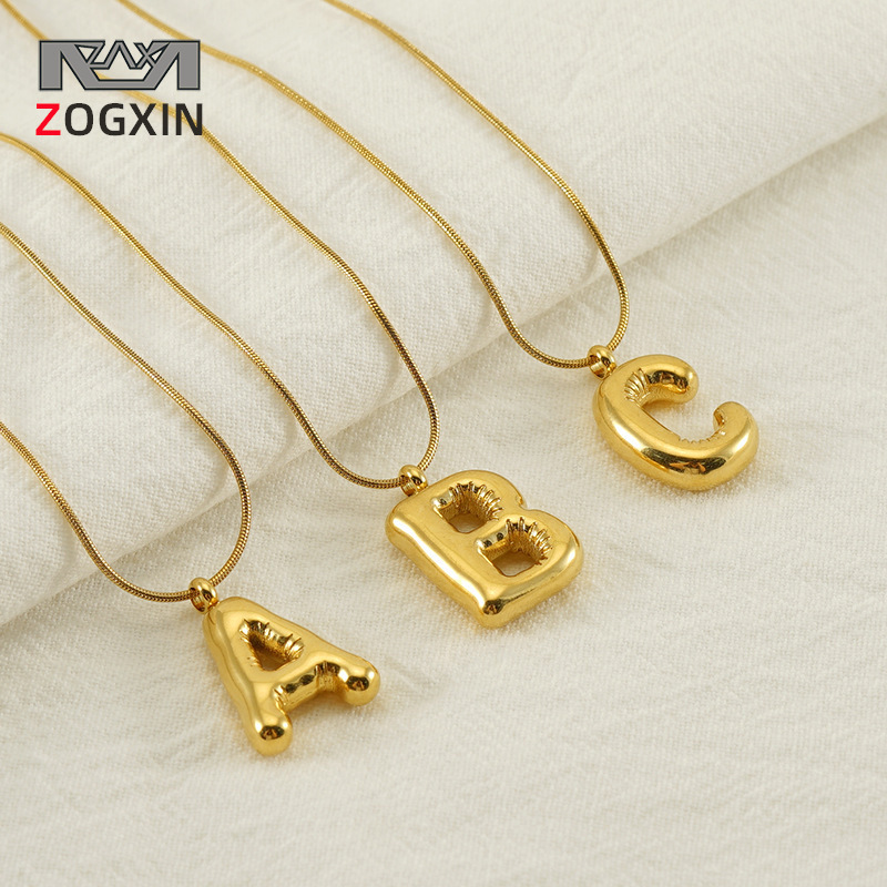 Cross-border 26 English letter pendant titanium steel small snake chain fashion accessories European and American stainless steel bubble hip-hop necklace women