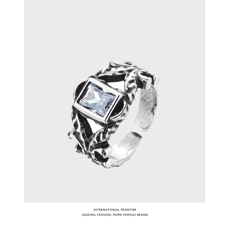 European and American Square Gem Ring Men's and Women's Fashionable Hip-hop Retro Finger Ring Personalized Fashion Live Mouth Ring Cross-border