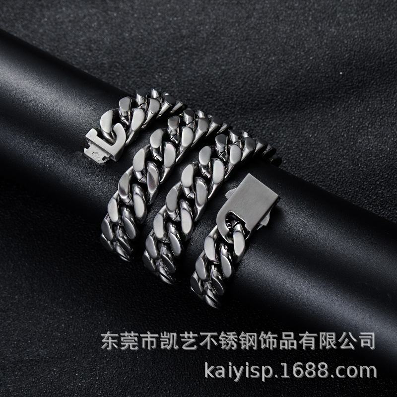 European and American fashion brand men's double-sided brushed stainless steel Cuban necklace hip hop matte titanium steel clavicle chain women