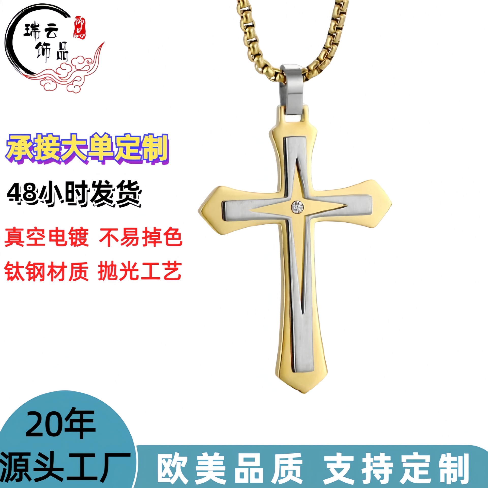 Cross-border Explosions Fadeless Titanium Steel Gloss Cross Men's Necklace Hip-hop Simple All-match Long Woolen Chain