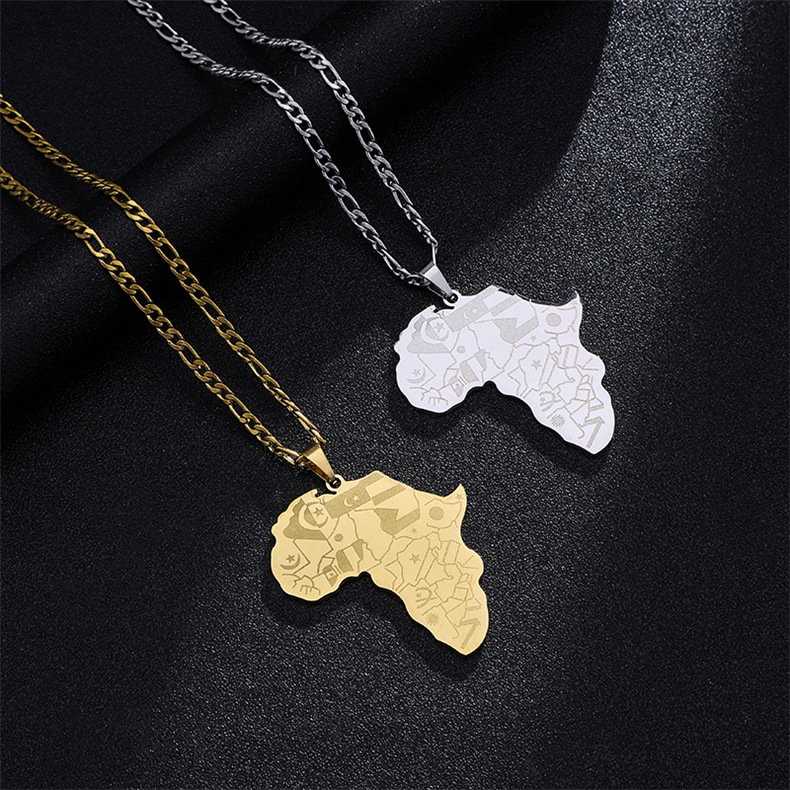 Stainless Steel African Large Map Necklace Unisex Hip-Hop Personality Retro Family Style Pendant Headwear