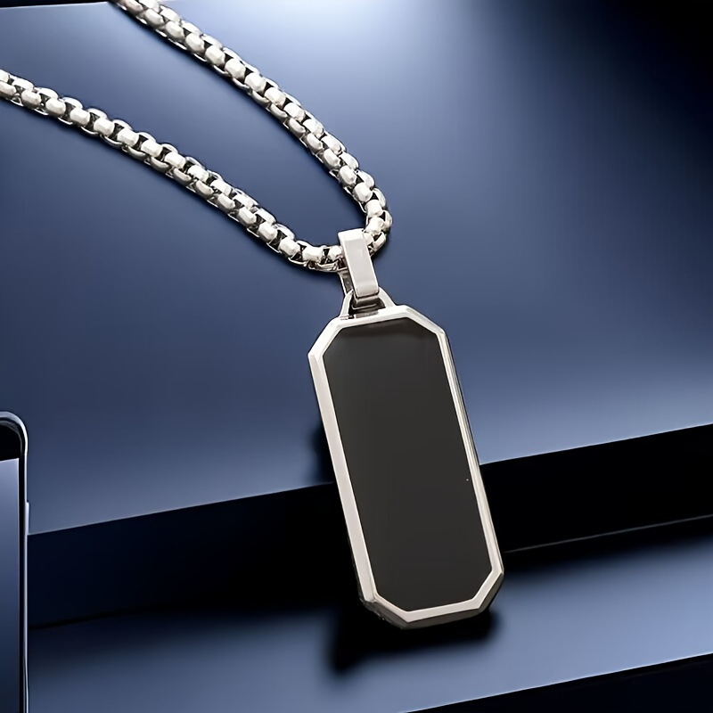Cross-border new stainless steel hip-hop necklace men's three-dimensional rectangular titanium steel necklace lovers pendant jewelry accessories