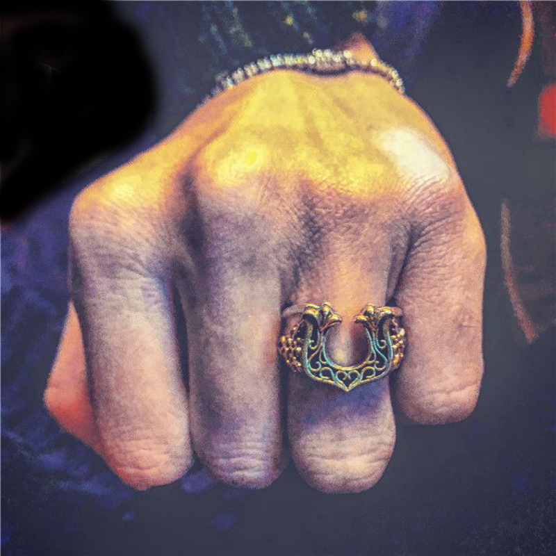 Yishang's New Lucky Tang Grass Horseshoe Ring Hip-Hop Punk Style Ring Niche High-End Opening Adjustable