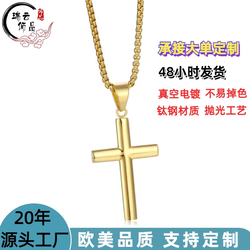 Cross-border source explosive jewelry simple smooth cross pendant hip-hop versatile stamping stainless steel necklace men