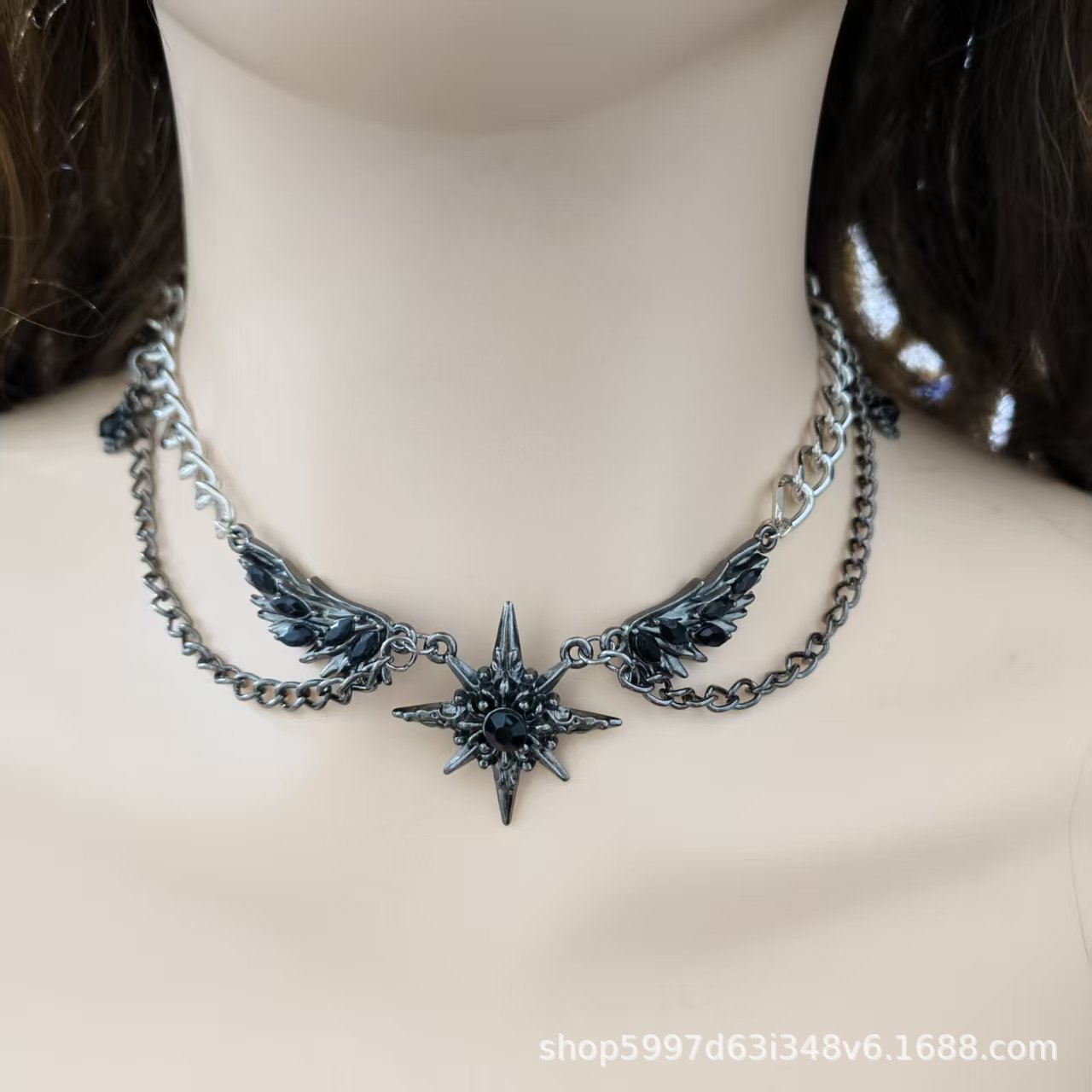 Cross-Border Niche Design Versatile Necklace Couple Dark Style Star Gemstone Diamond Wings Hip-Hop Street Necklace