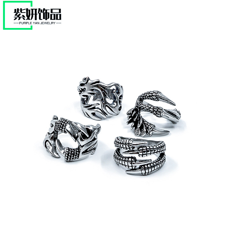 Retro Men's and Women's Popular Dragon Claw Jewelry Hip-Hop Alloy Electroplated Punk Jewelry Ring Cross-Border Exclusive Ring Foreign Trade