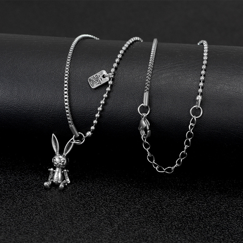 Rabbit Necklace with Movable Limbs for Women, Trendy Hip-Hop Japanese and Korean Style Bunny Pendant Clavicle Chain, Unique Hip-Hop Jewelry