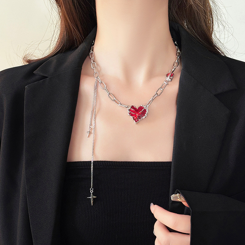 Red love necklace European and American fashion tassel four mans star chain clavicle chain necklace hip hop personality niche temperament