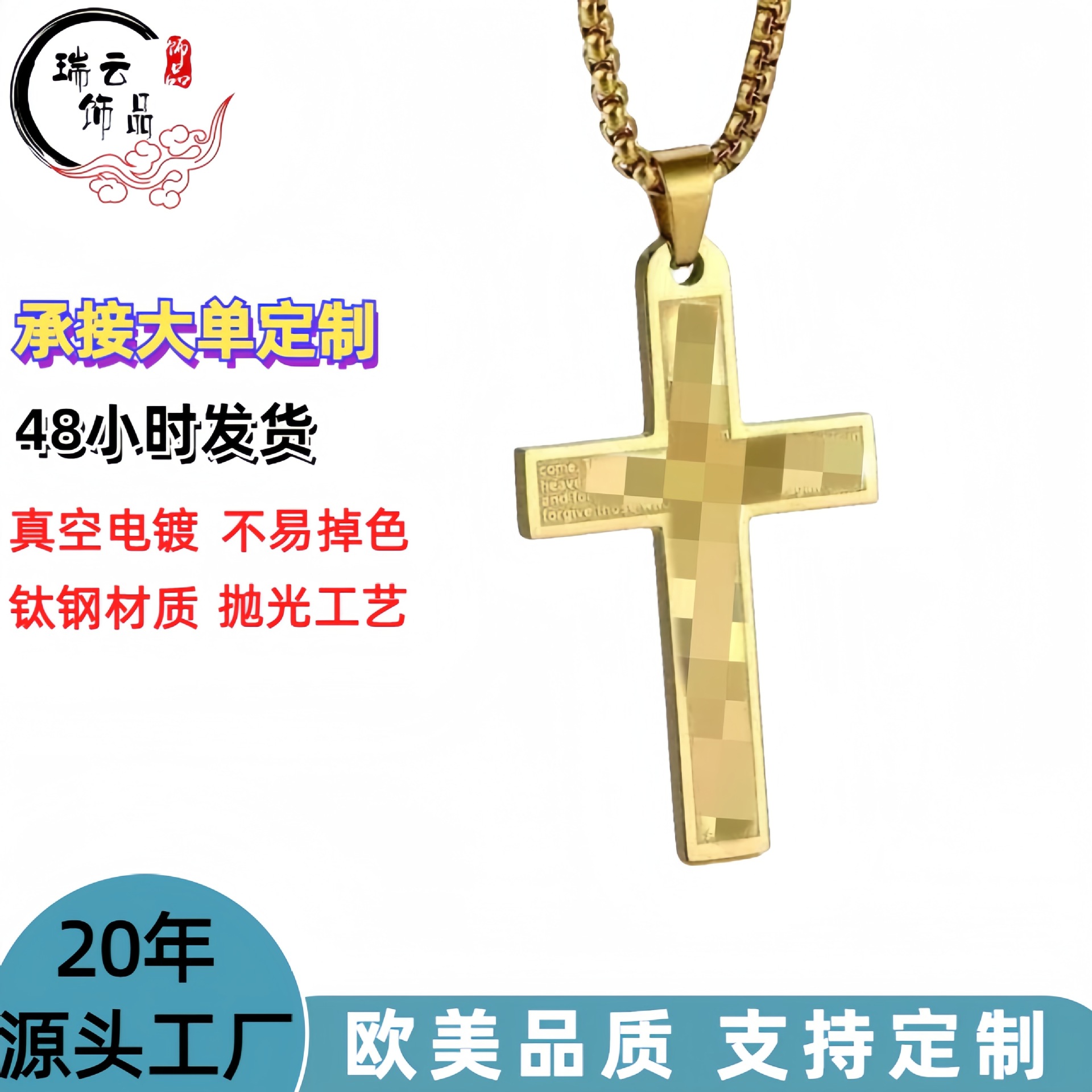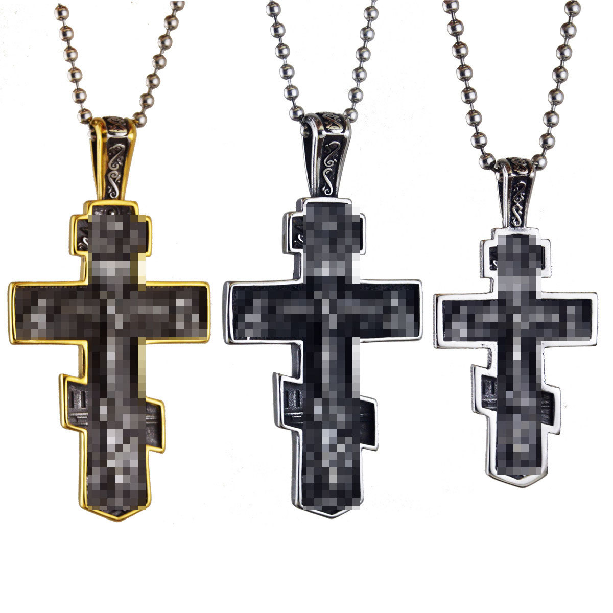 Cross-Border Best-Selling Men's Stainless Steel Cross Wholesale Hip-Hop Stainless Steel Pendant Necklace English Stainless Steel