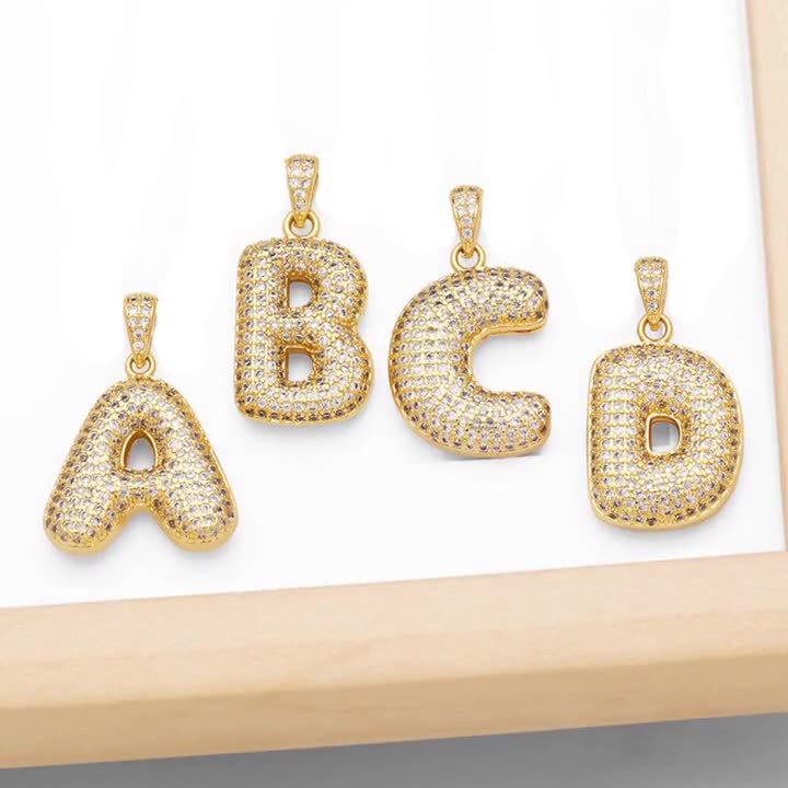 Cross-Border New Copper Inlaid Zircon 26 English Letter Pendants Full of Diamonds 18K Letter Necklace Personalized Hip-Hop Necklace