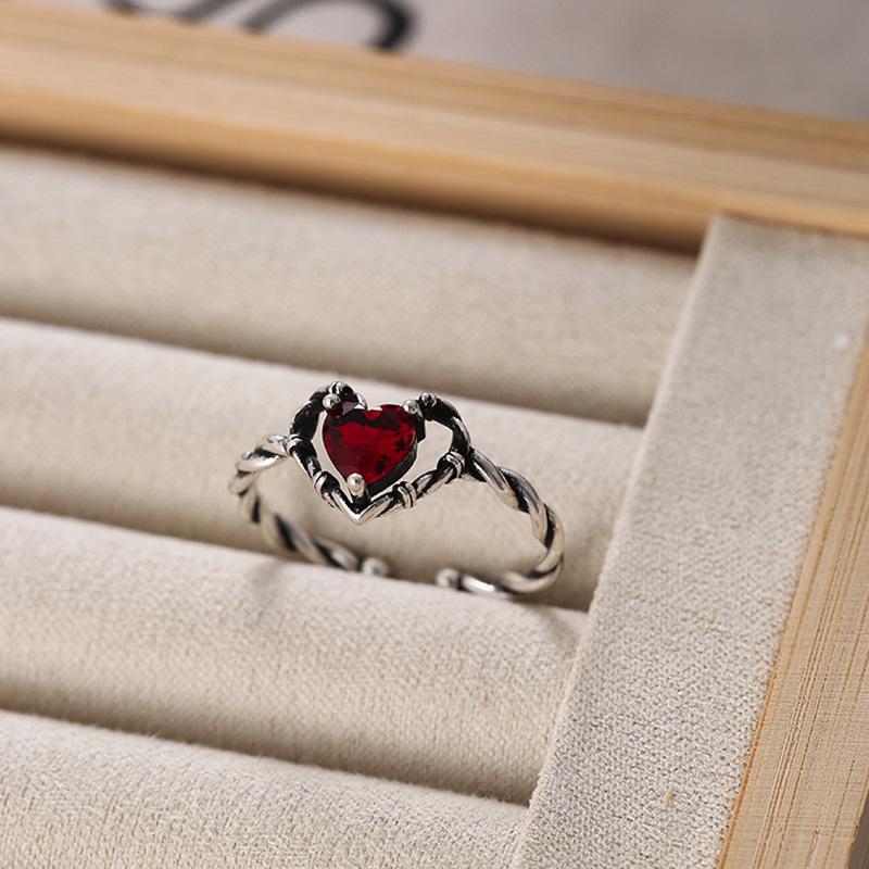 Vintage Ruby Love Black Ring Men's and Women's Ins Niche Design Sense Cold Style Personalized Hip Hop Finger 2024