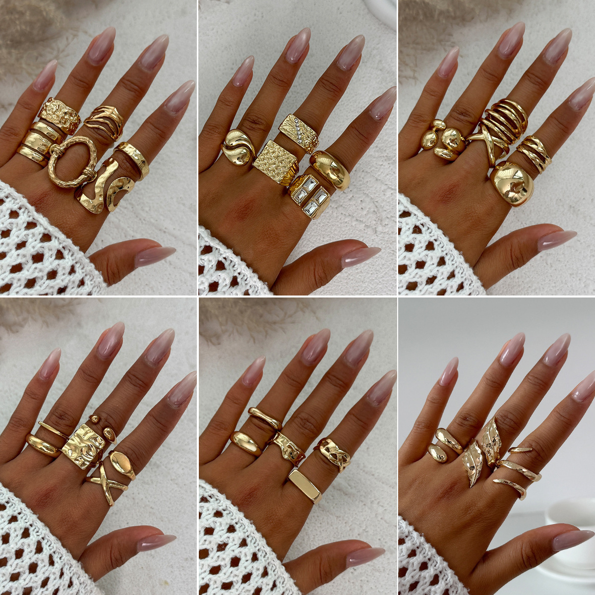 European and American Cross-Border Design Metal Cross Pleated Ring Set Hip-Hop Ins Water Drop Hug Glossy Ring for Women