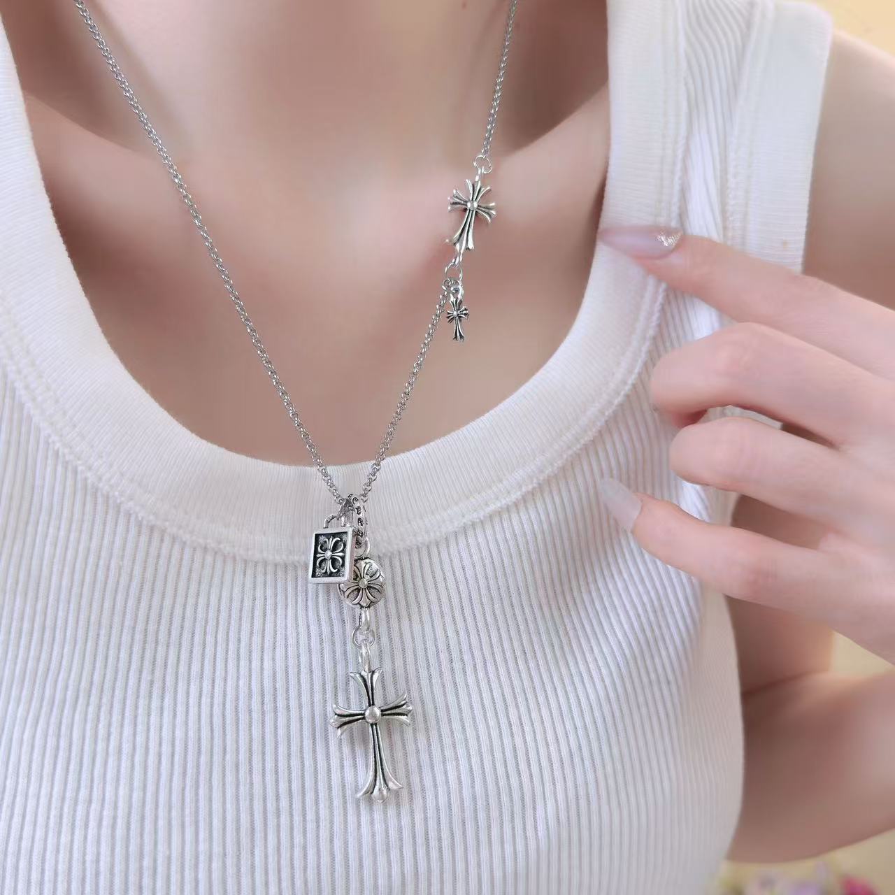 Vintage Cross Necklace Men's Trendy Cold European and American Hip Hop Pendant Men's Thai Silver Stereo Cross Necklace