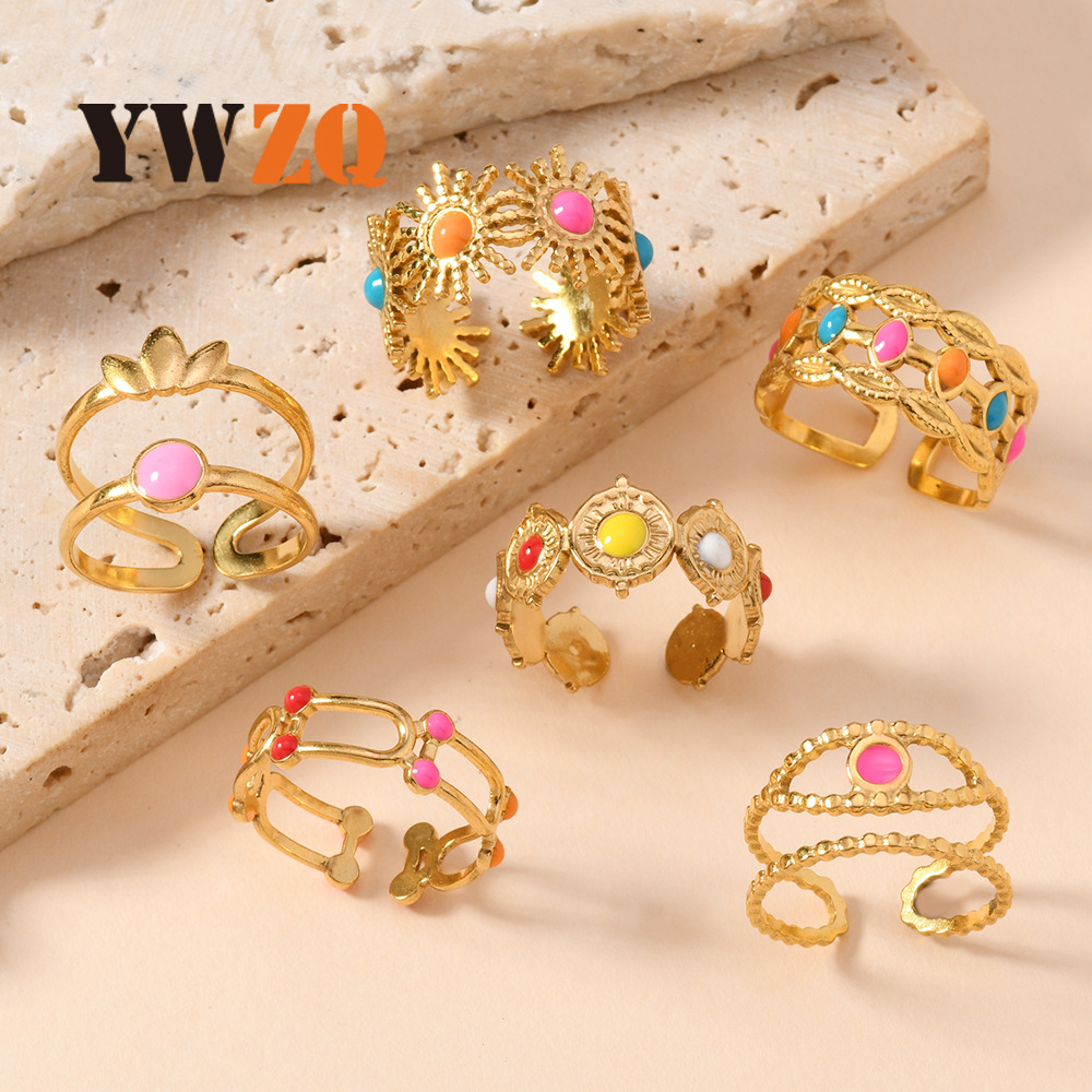 Cross-border foreign trade stainless steel jewelry fashion personality oil pressure drop oil opening ring plated 18k gold hip hop ring