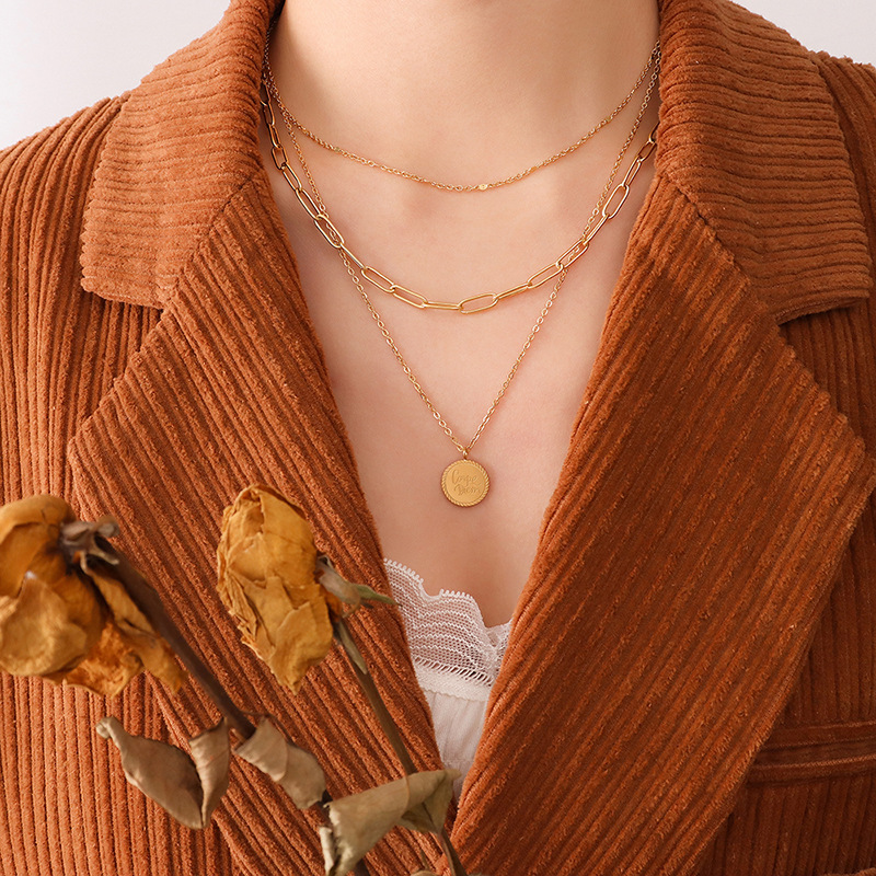 Cross-border Hot Selling Titanium Steel Material Chain English Letter Round Brand Pendant Necklace Hip-hop Cold Wind Trend Clavicle Chain