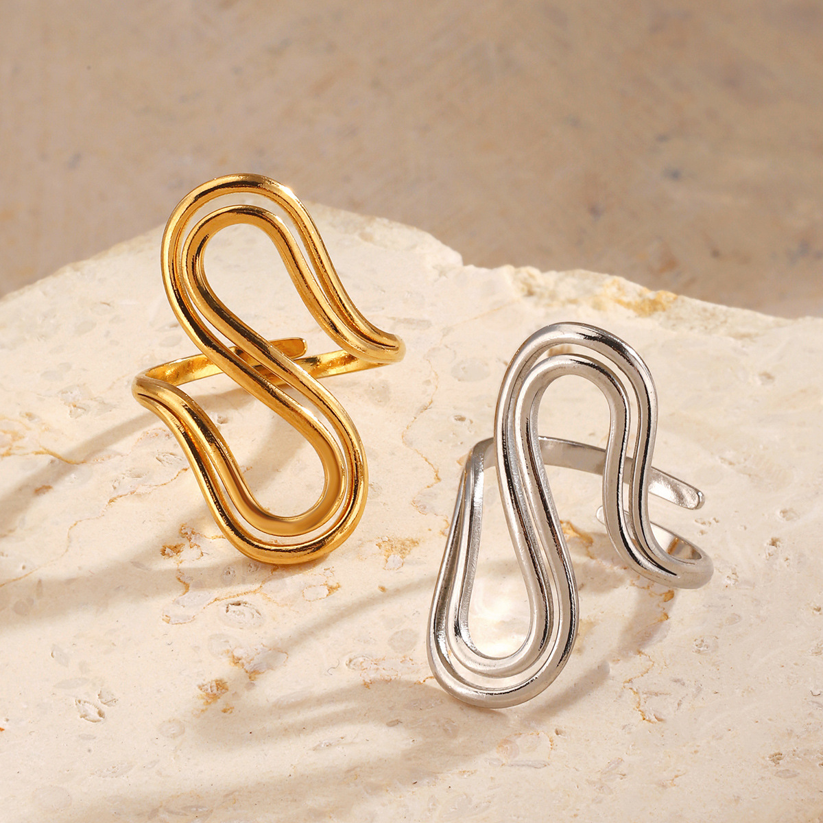 European and American Fashion Exaggerated Oversized Double-Layer Line Rings Personality Hip-Hop Open Stainless Steel Rings Wholesale