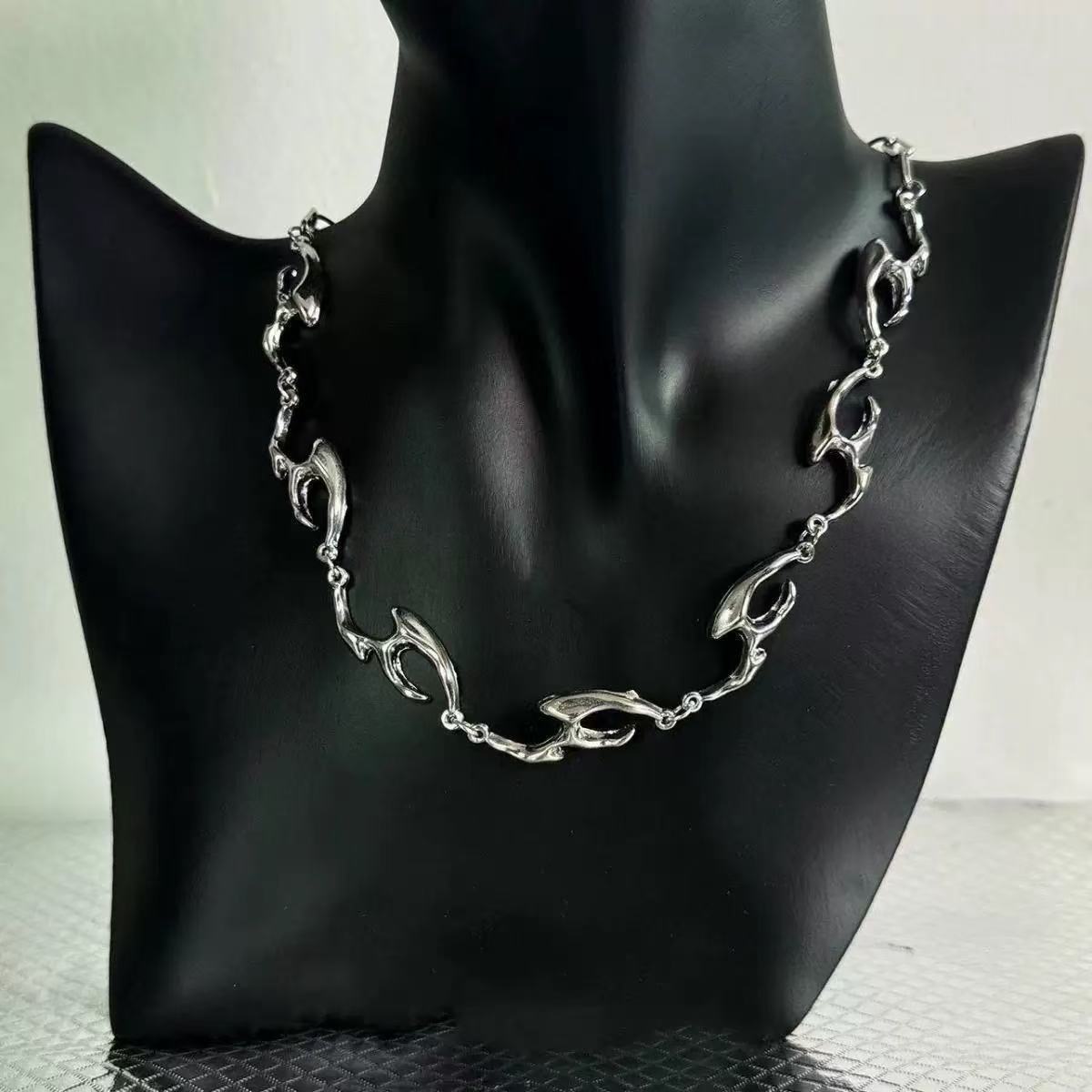 Irregular Shaped Metal Texture Necklace Hip Hop Men's and Women's Niche Design High-grade Clavicle Chain Necklace New Style
