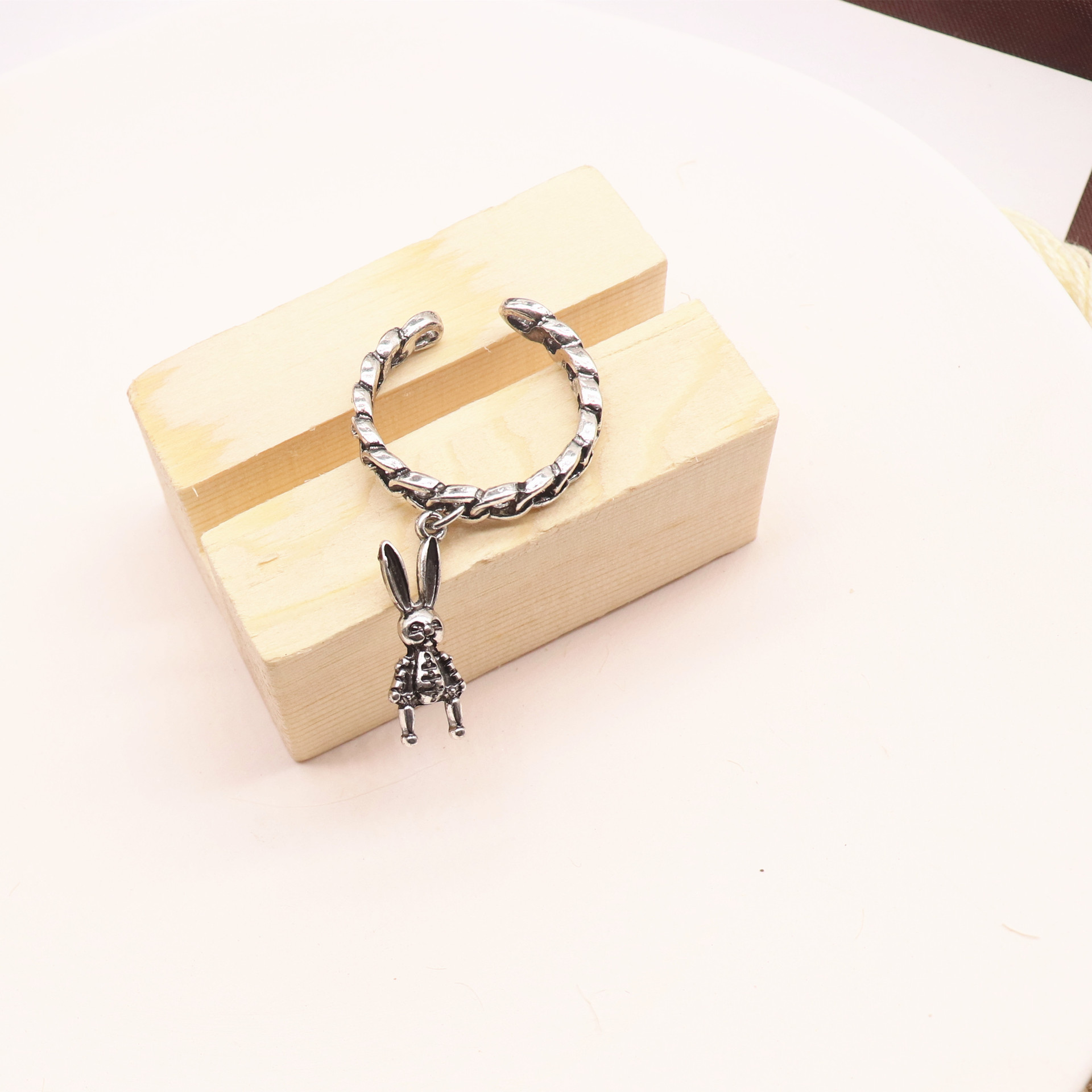 European and American fashion jewelry retro hip hop simple machine rabbit ring distressed open adjustable ring female