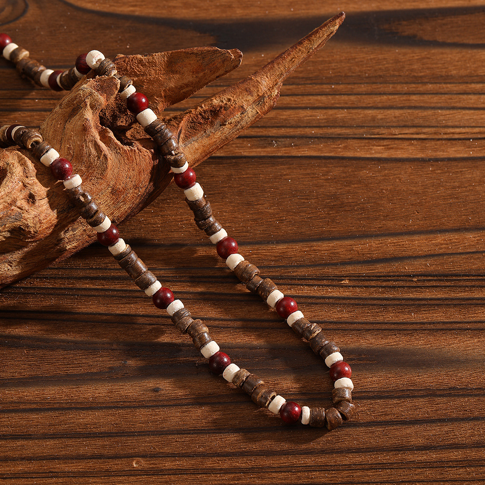 European and American Bohemian Style Spliced Wooden Bead Necklace for Men, Hip-Hop Niche Simple Design Clavicle Chain Wooden Necklace