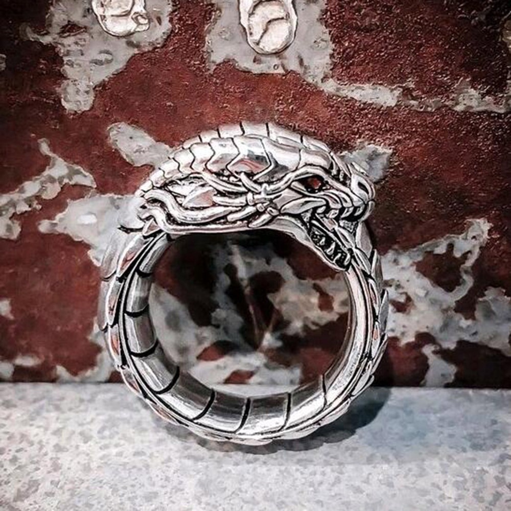 Fei Language Cross-border Hot Selling Retro Personality Dragon Creative Men's Fashion Jewelry Bracelet Silver Punk Hip-hop Ring