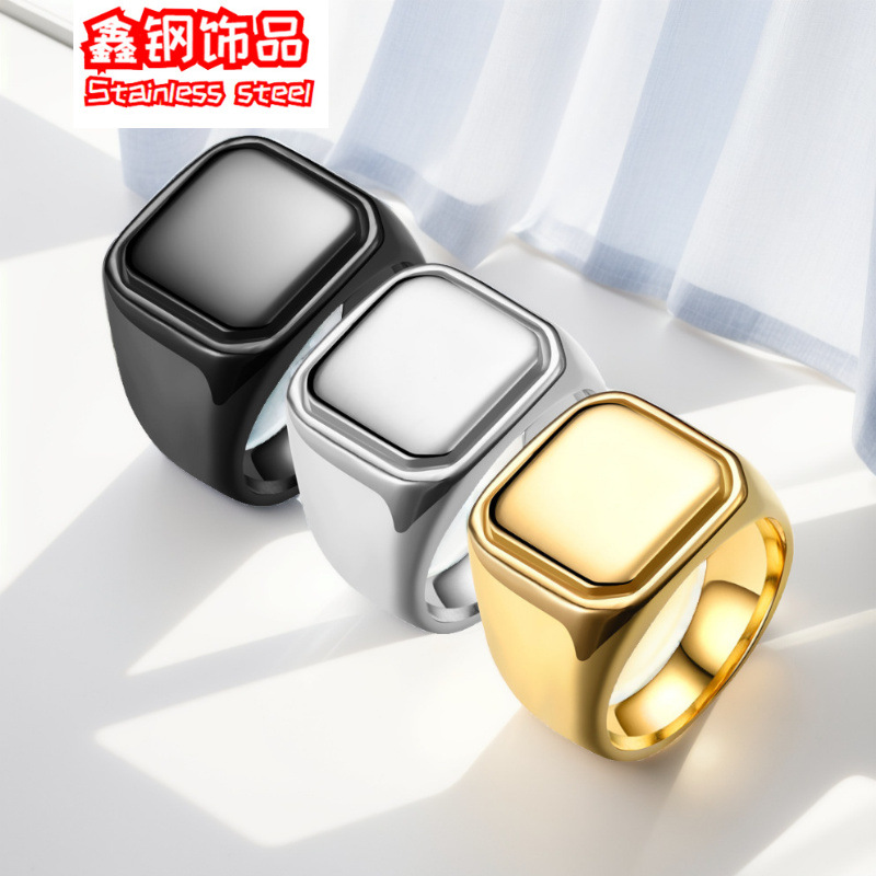 European and American men's simple fashion personality hip hop square smooth ring cross border stainless steel ring lettering