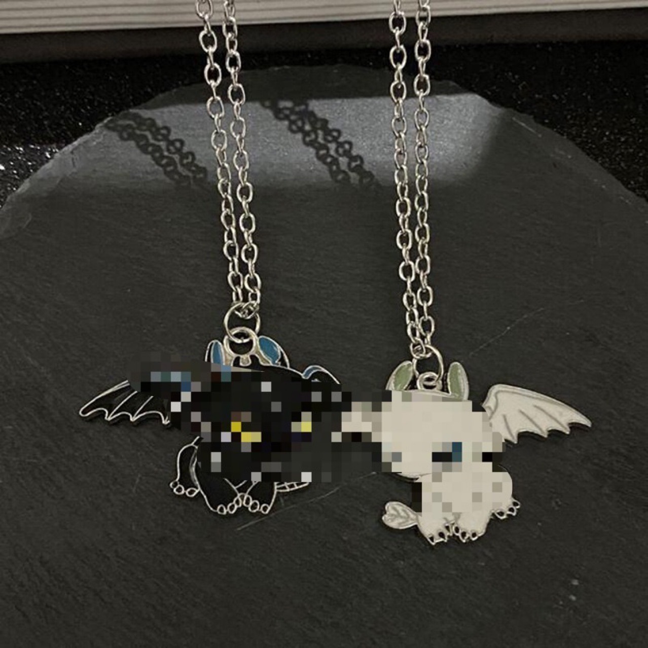 Black and White Night Fury Double Dragon Couple Necklace, a Pair of Male and Female Best Friends ins Hip-hop Personalized Pendant Trend