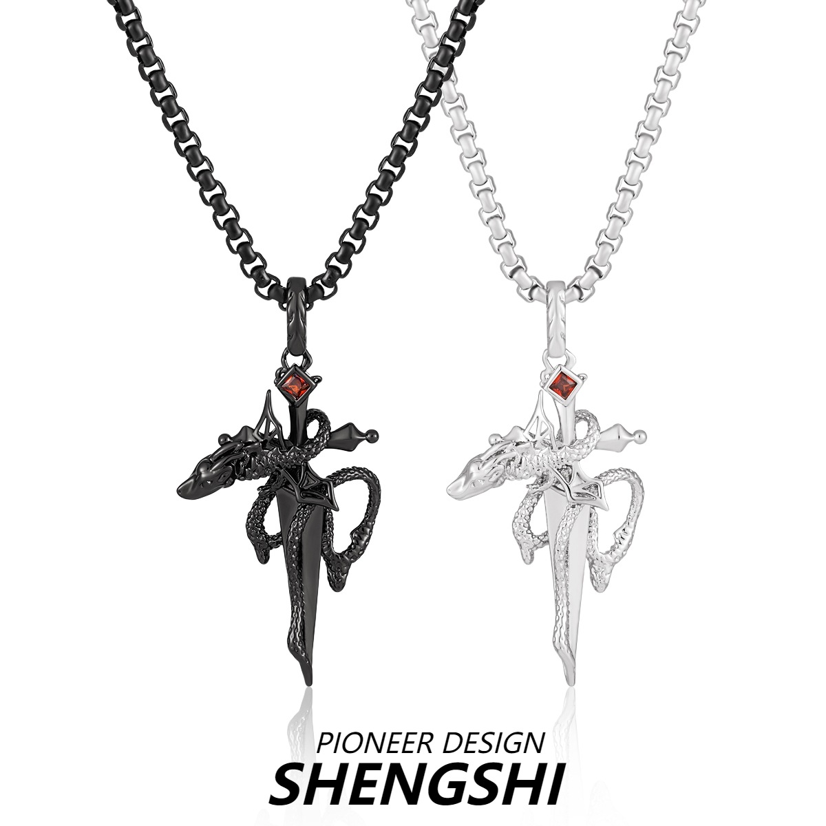 European and American Hip-Hop Cross Dragon Necklace Women's Titanium Steel Non-Fading Niche Design Dark Style Accessories Sweater Chain Jewelry
