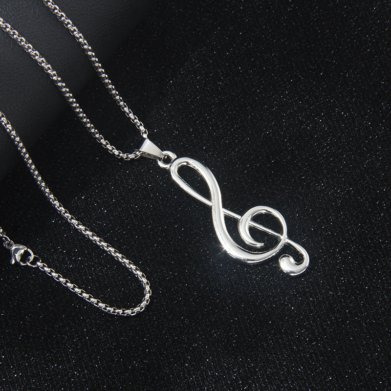 Foreign Trade New Academy Style Musical Note Stainless Steel Necklace Simple All-match Internet Celebrity Hip Hop Rock Music Long Accessories