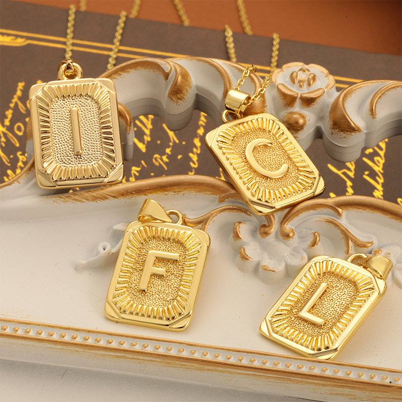 New cross-border 18K gold square brand letter pendant hip hop fashion English letter necklace accessories wholesale