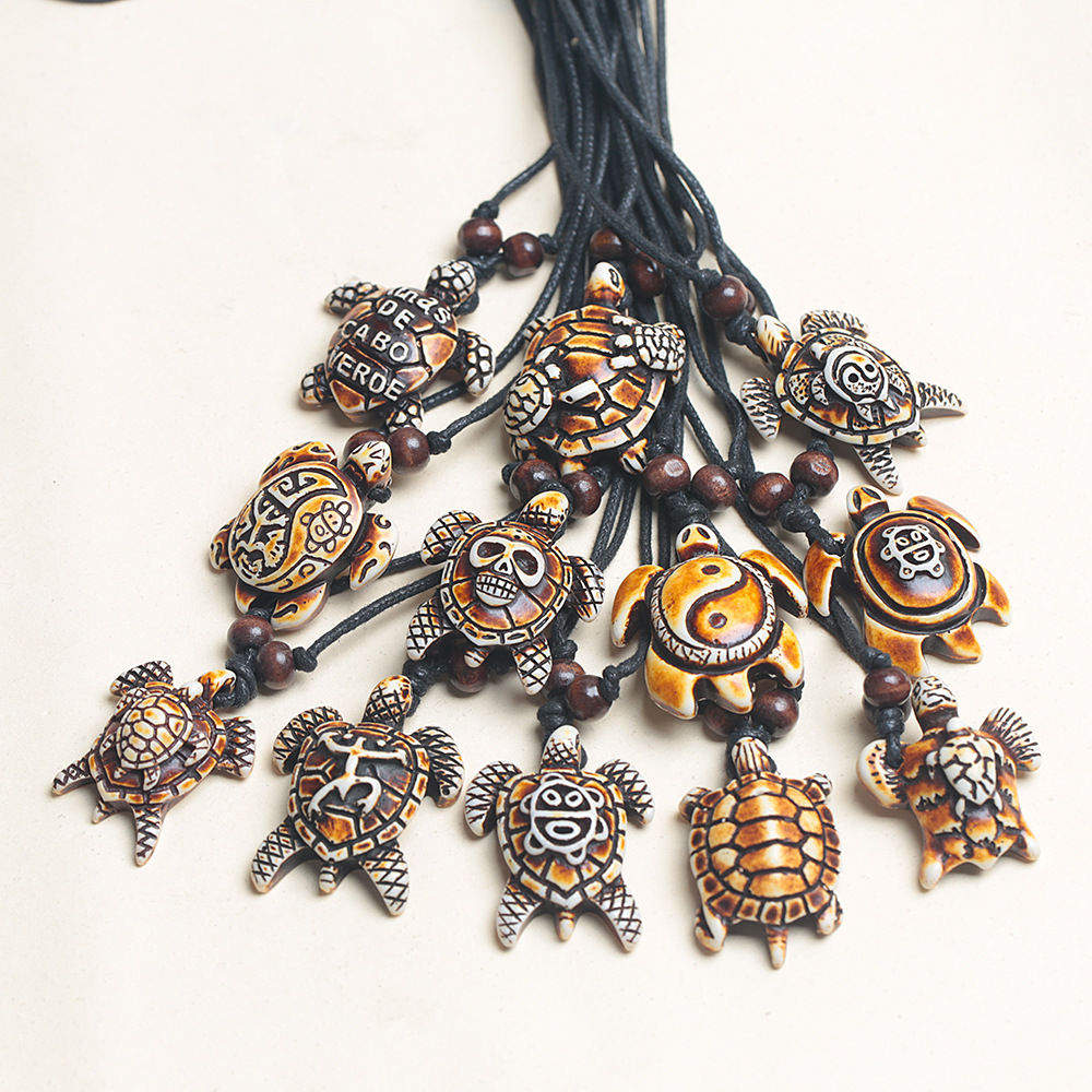 Vintage Retractable Turtle Pendant Necklace Hip Hop Style Resin Turtle Rope Woven Accessories Personalized Couple Jewelry
