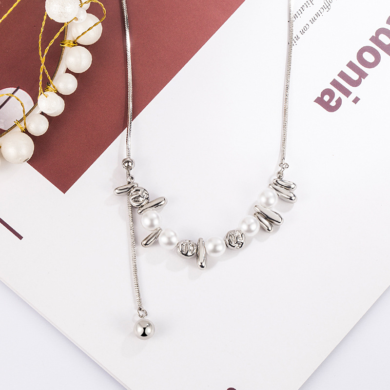 Silver imitation pearl necklace 2024 new autumn and winter high-grade popular long snake bone sweater chain temperament hip hop