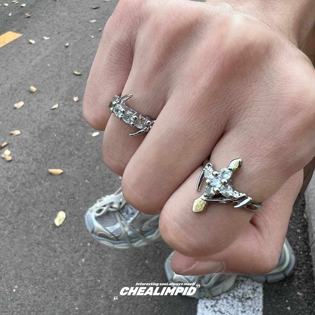 CHEA /. Redemption Cross Irregular Geometry Ring Niche Design Diamond High Sense Hip Hop Trendy Men and Women
