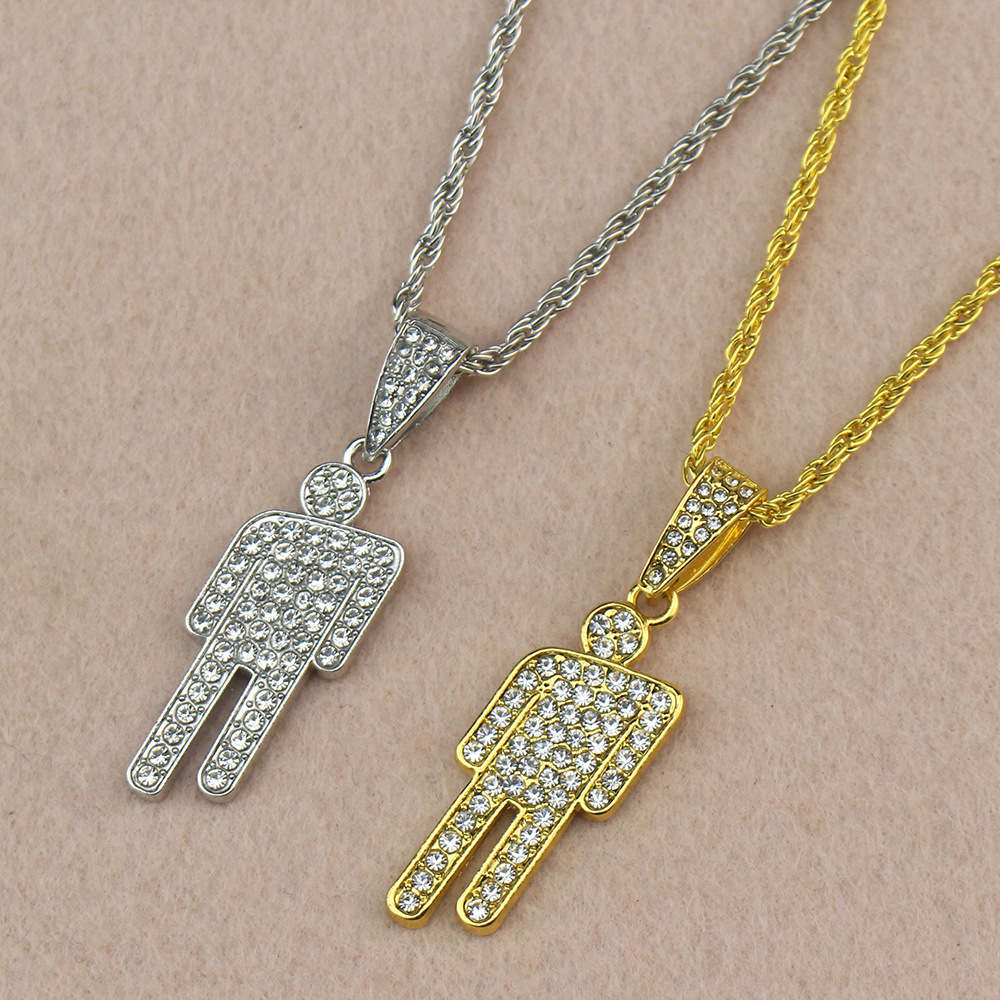 Cross-border Hot Selling European and American Necklace BillieEilish Same Style Tilt Head Pendant Full Zircon Hip-hop Necklace