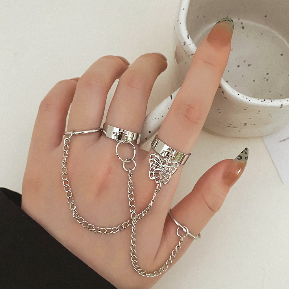 Distinctive Niche Chain Combination Ring Set Women's Simple Design Sense Geometric Fashion High Sense Butterfly Ring